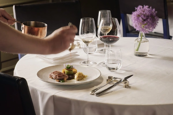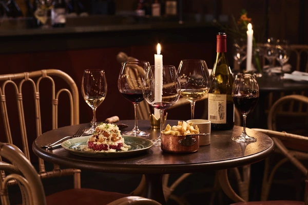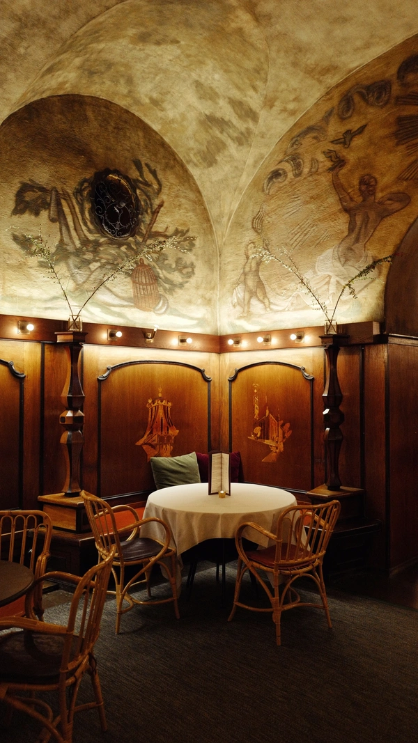 Next to the dining room, our wine bar offers a more relaxed atmosphere, with a curated selection of wines by the glass and a bistro-inspired menu designed for sharing – all guided by the same ethos: From the forest to the city.